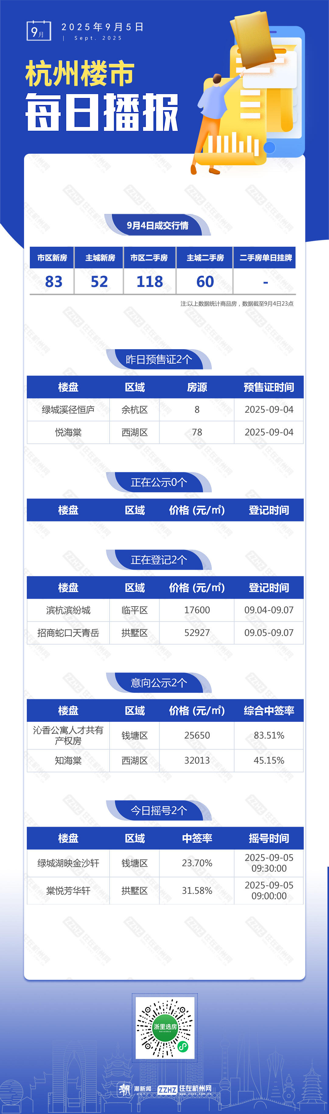 9月5日,杭州新房5盘预售,2盘报名中